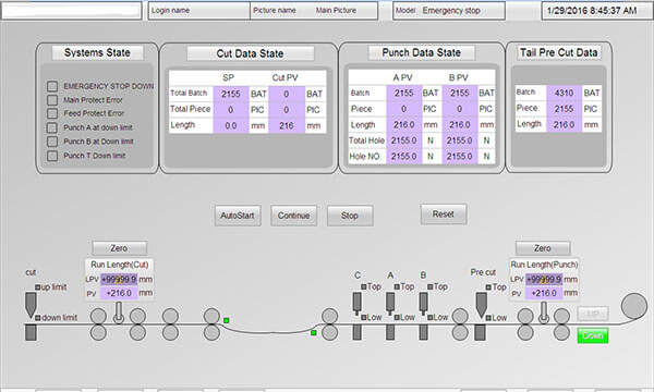 2. the punching function, the punching holes position, quantity, the punching sizes, the input, the out put, the stopping time, the cutting time. All can be controlled by the computer.