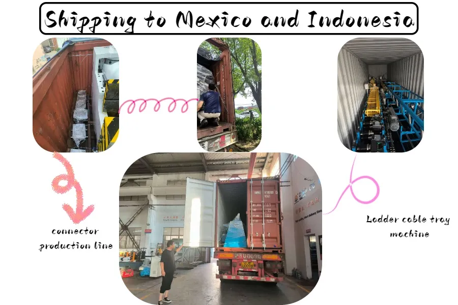 Before shipment, both the connector production line and the cable tray machines underwent thorough quality checks and trial production runs. Every part of the process—from forming accuracy to cutting precision—was verified to meet the customers’ specifications. Each machine was then carefully packed and secured for sea transport, with corrosion protection measures in place to ensure safe arrival.