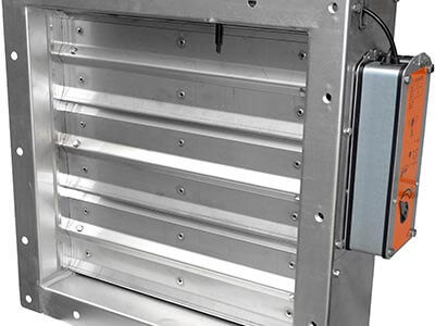 A fire damper can be defined as “a device installed in ducts and air transfer opening of an air distribution or smoke control system designed to close automatically upon detection of heat. It also serves to interrupt migratory airflow, resist the passage of flame, and maintain the integrity of the fire rated separation.” Its primary function is to prevent the passage of flame from one side of a fire-rated separation to the other. Fire dampers are operated by a fusible device, typically a melting link. Fire dampers are equipped with a fusible link (rated for 165°F up to 286°F), which holds the blades open until it the link melts. Upon reaching the melting point, the blades then close and stop the flame from moving into an adjoining compartment. Location: Fire dampers are installed in or near the wall or floor, at the point of duct penetration, to retain the integrity and fire rating of a wall or floor whether it is a ducted or open-plenum return application. Should the ductwork fall away, the damper needs to stay in the wall or floor to maintain the integrity of the wall or floor. One should actually think of the fire damper as part of the wall system itself. Sleeves and Attachment: Fire dampers are required to be installed in sleeves. Lighter gauge sleeves (18–20 ga.) require a breakaway connection from the sleeve to the ductwork. Heavier, smaller dampers (16 ga.) can be installed with a hard duct connection.