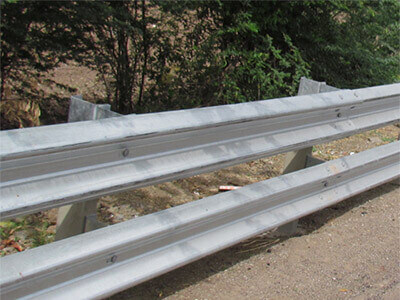 Highway Guard rail or guardrail, sometimes referred to as guide rail or railing, is a system designed to keep people or vehicles from (in most cases unintentionally) straying into dangerous or off-limits areas. A handrail is less restrictive than a guard rail and provides both support and the protective limitation of a boundary.