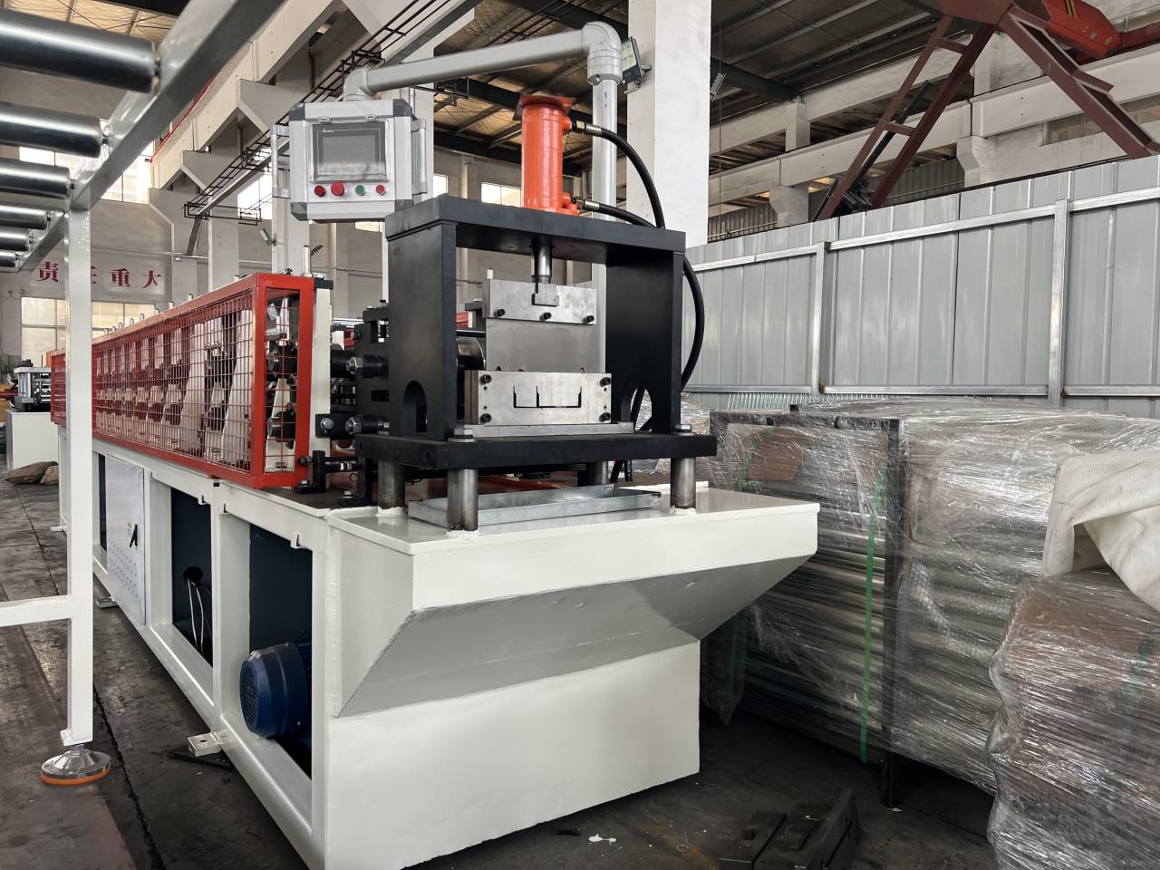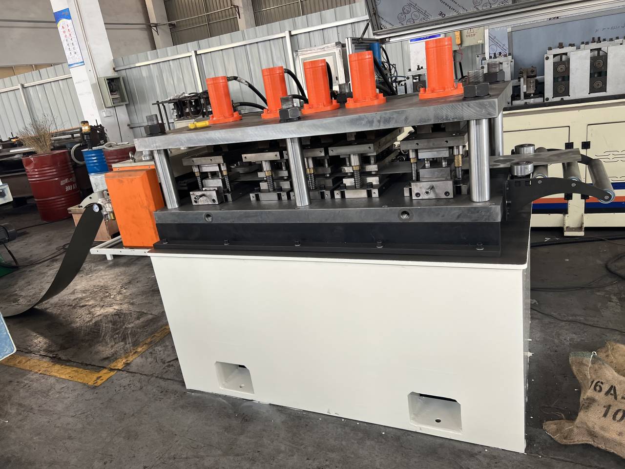 Today, our Malaysia customers come to our factory to check the Light Gauge Steel Framing Machine. For this machine, it is a little different from the normal Light Guage Steel Framing Machine. It doesn't have the software. And the punching mold is seperate. But the price is lower than the normal machine. All the accessories are put under the machine. It can save a lot of space.