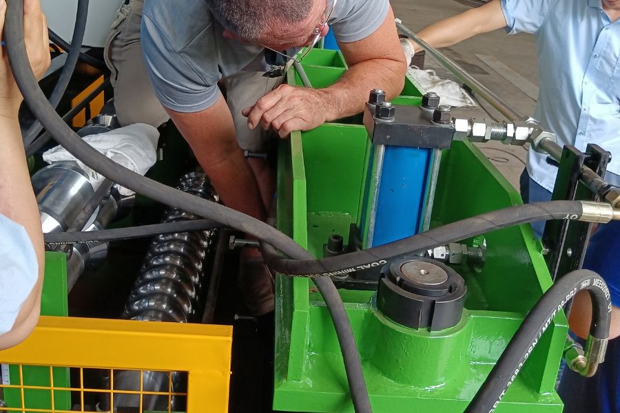 Secondly, this client visited our factory to test the machine, and our engineer teached him how to change the cutting blades and how to operate the control box.
