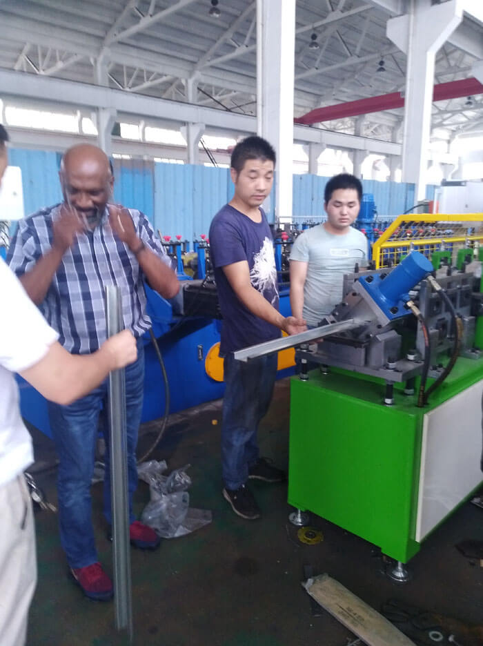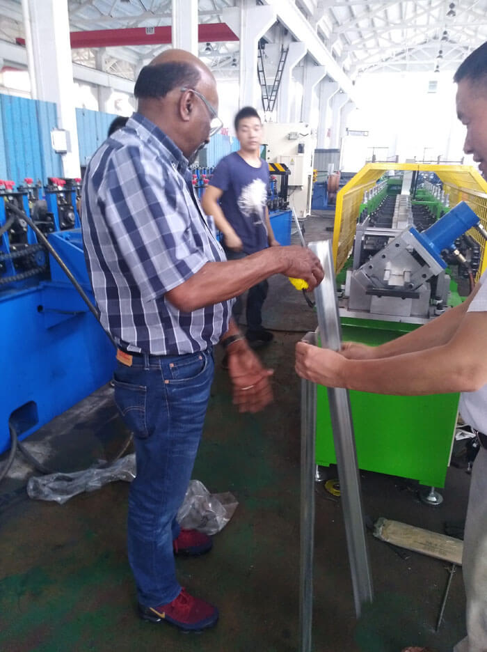 He buys three machines, each of which is omega roll forming machine, angle roll forming machine and shelf box roll forming machine machine.