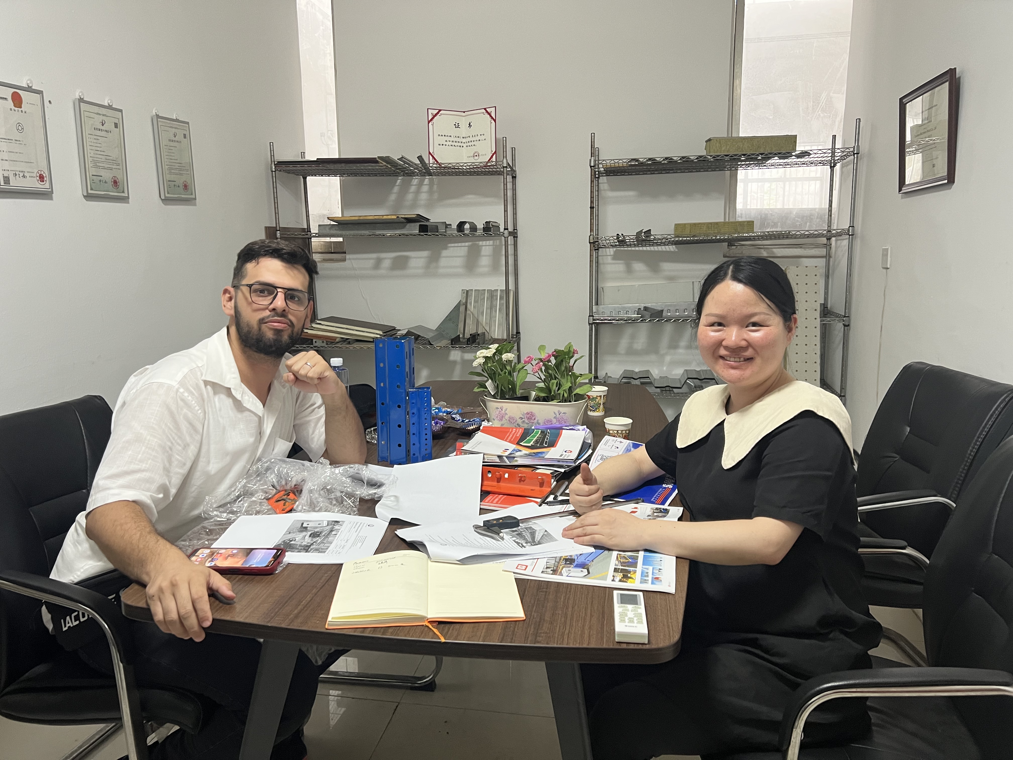 We talked about the details of the Upright Rack Roll Forming Machine, Hydraulic Guillotine Shear and CNC Press Machine.
