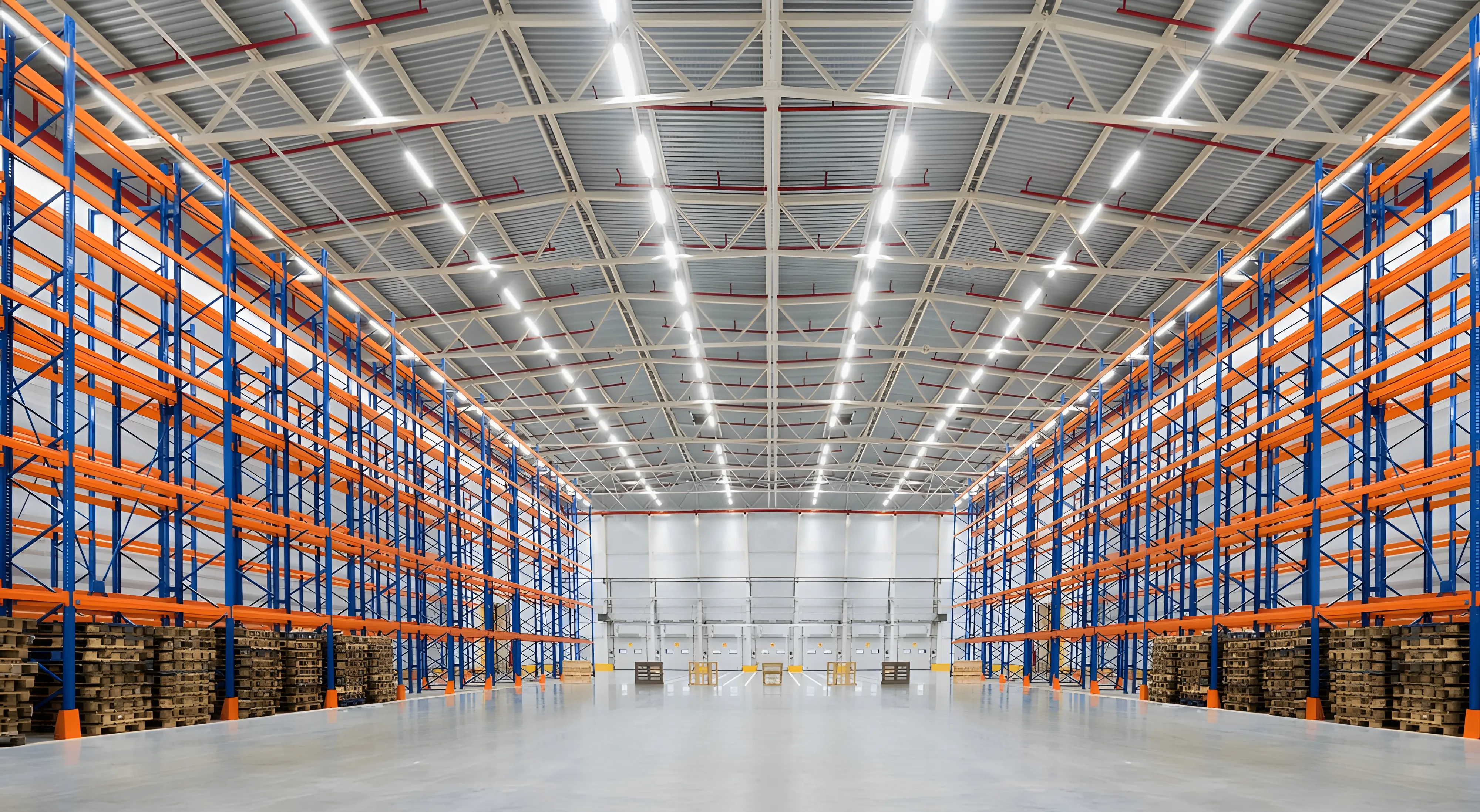 An upright column is a single, roll-formed steel post, typically with a C-shape or Hat-shape cross-section. These columns are welded together with horizontal and diagonal braces to create the complete upright frame.
