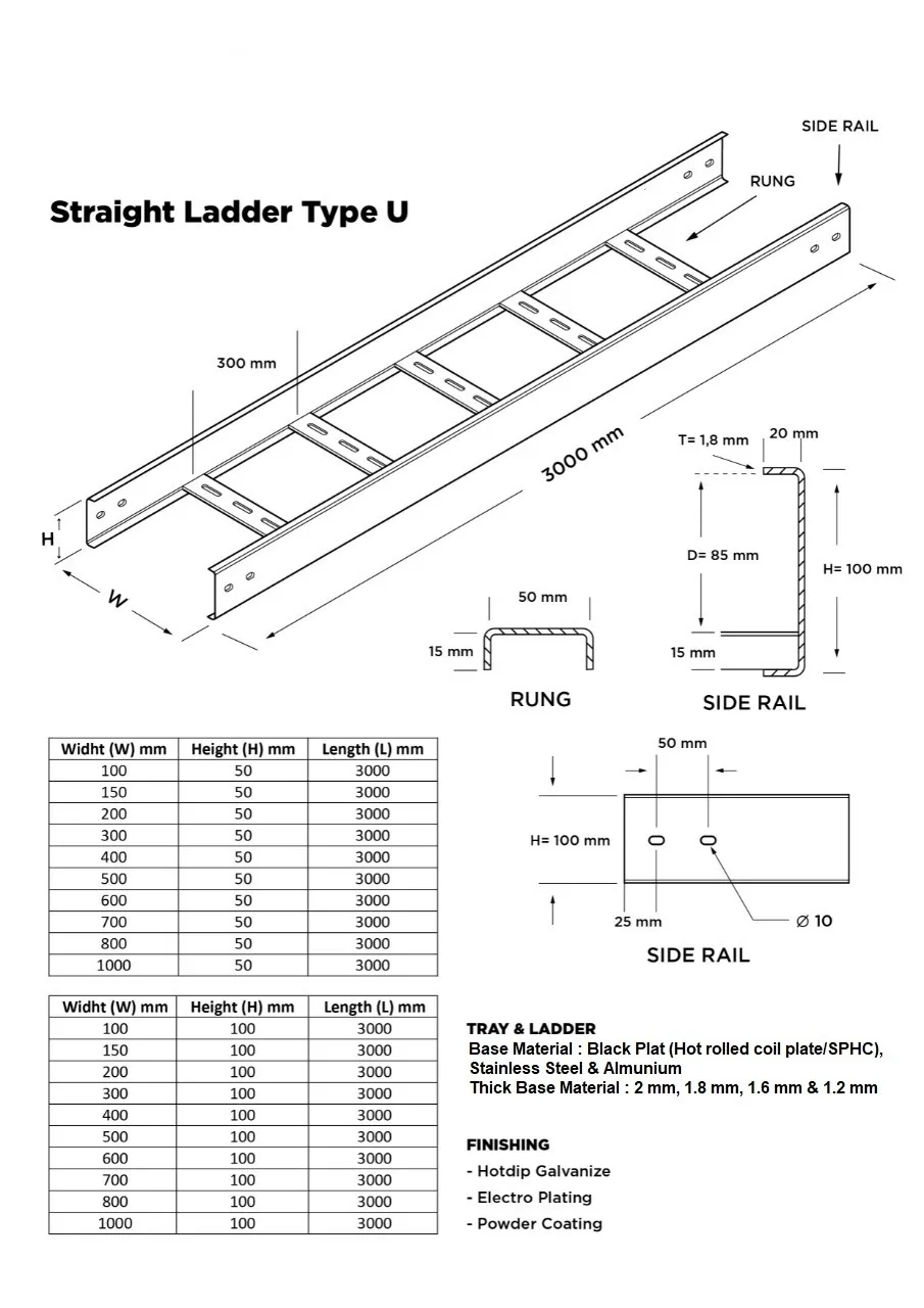 The U shape Ladder Cable Tray consists two parts, U side rail and the Rung.